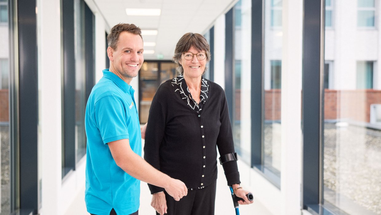 Na uw ziekenhuisopname wordt u overgebracht naar een van onze revalidatielocaties. Op onze revalidatieafdeling staat een deskundig zorg- en behandelteam voor u klaar. Er wordt een revalidatieprogramma op maat gemaakt dat is afgestemd op uw persoonlijke wensen, doelen en mogelijkheden. Belangrijk is dat u weer zelfstandig kunt functioneren en de dagelijkse dingen kunt doen. Denk aan (trap)lopen, naar het toilet gaan of een hobby uitoefenen. Wij stimuleren u om zoveel mogelijk zelf te doen, zoals wassen en aankleden.